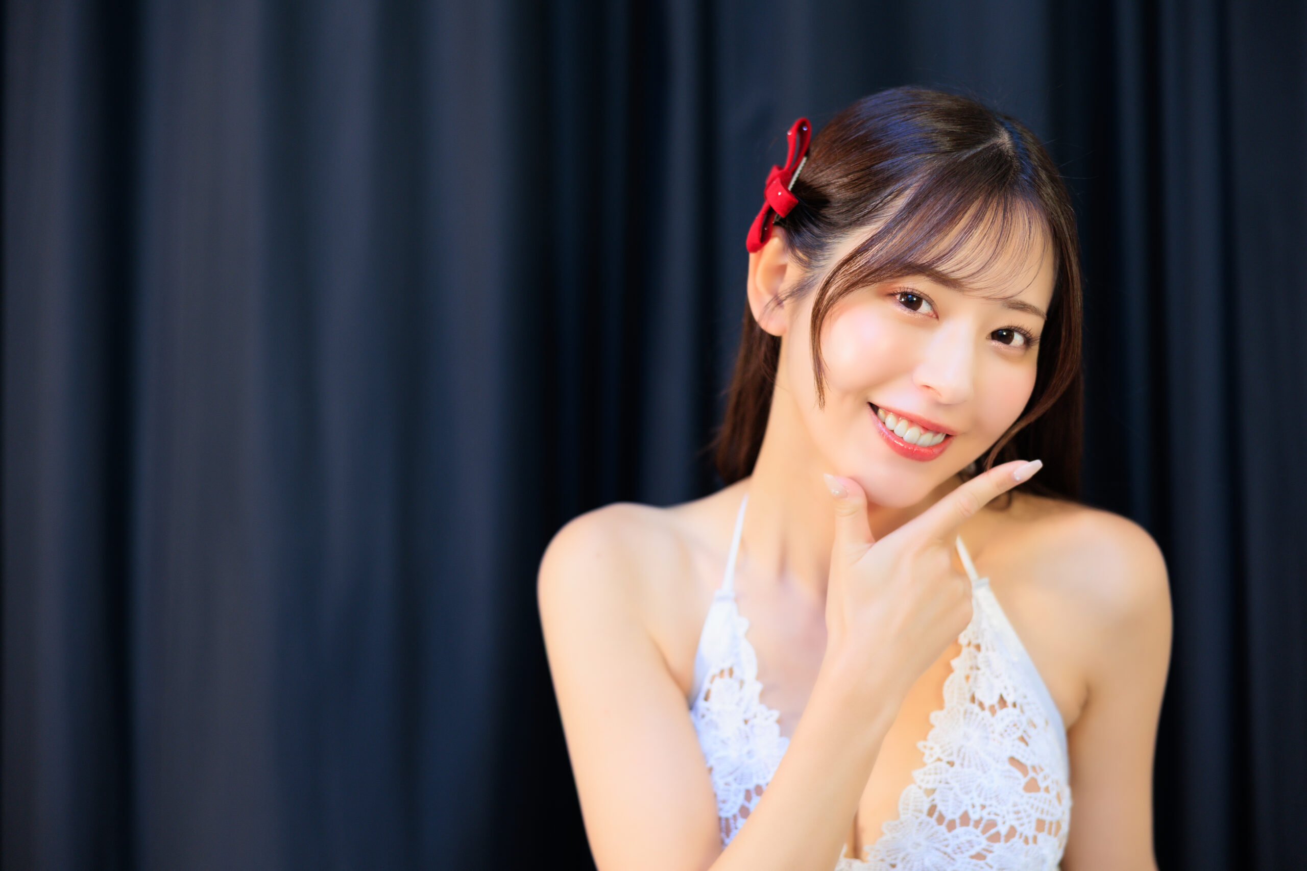 少し体を傾けたポーズと、ラフに髪に手を添えた仕草からは、親しみやすさと女性らしさが自然に伝わってきます。レースアンバサダーとしての華やかさはそのままに、ももちゃん自身の素直で可愛い人柄が前面に出ているように感じました。