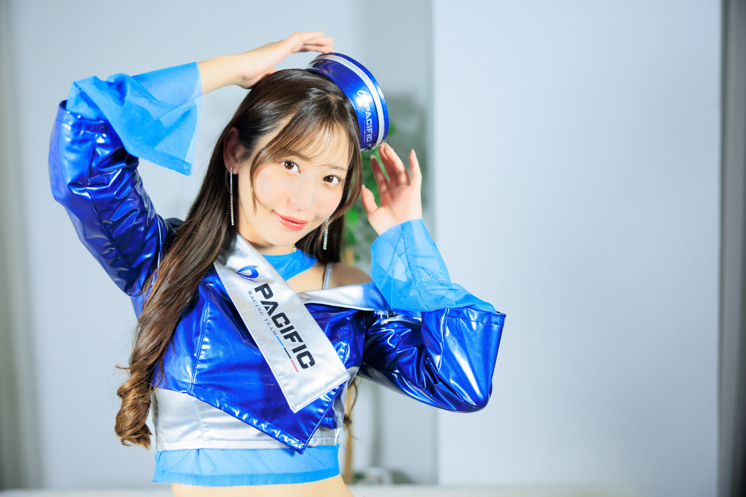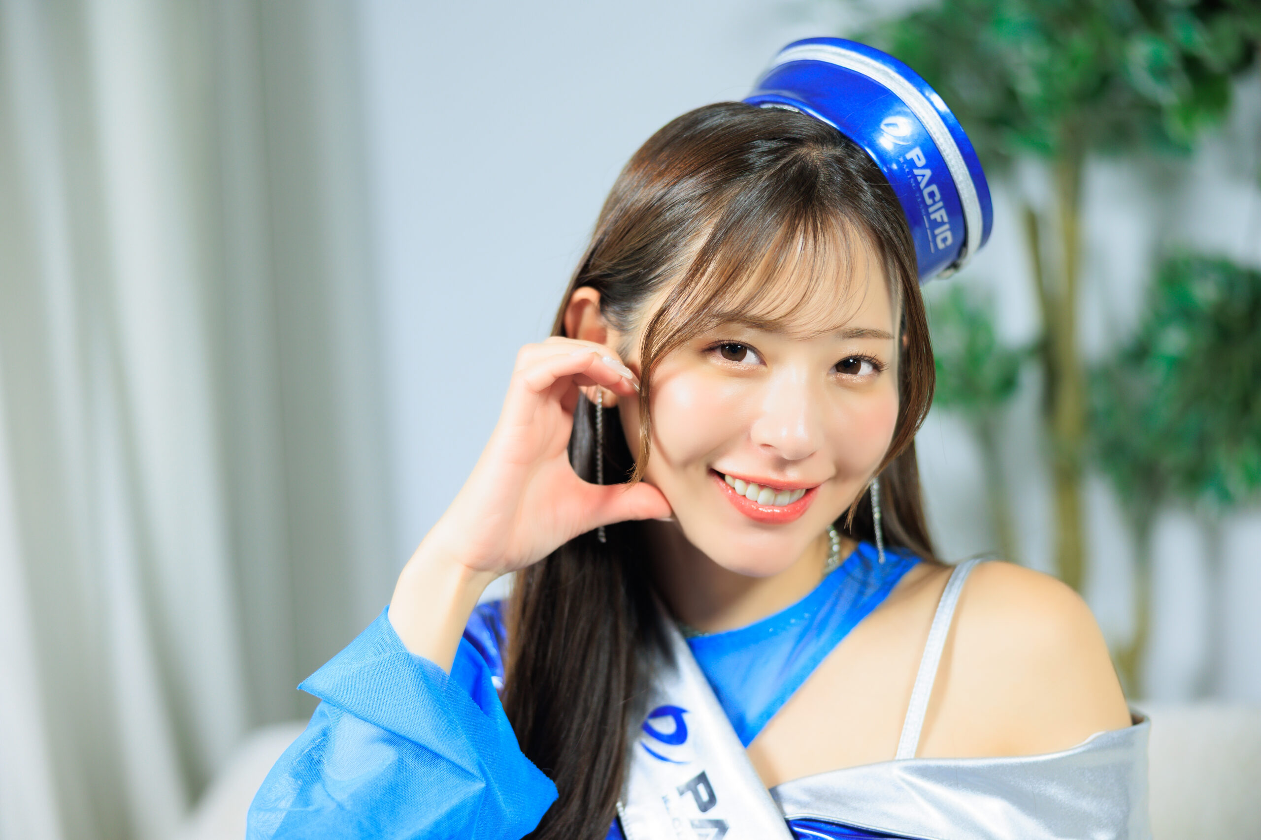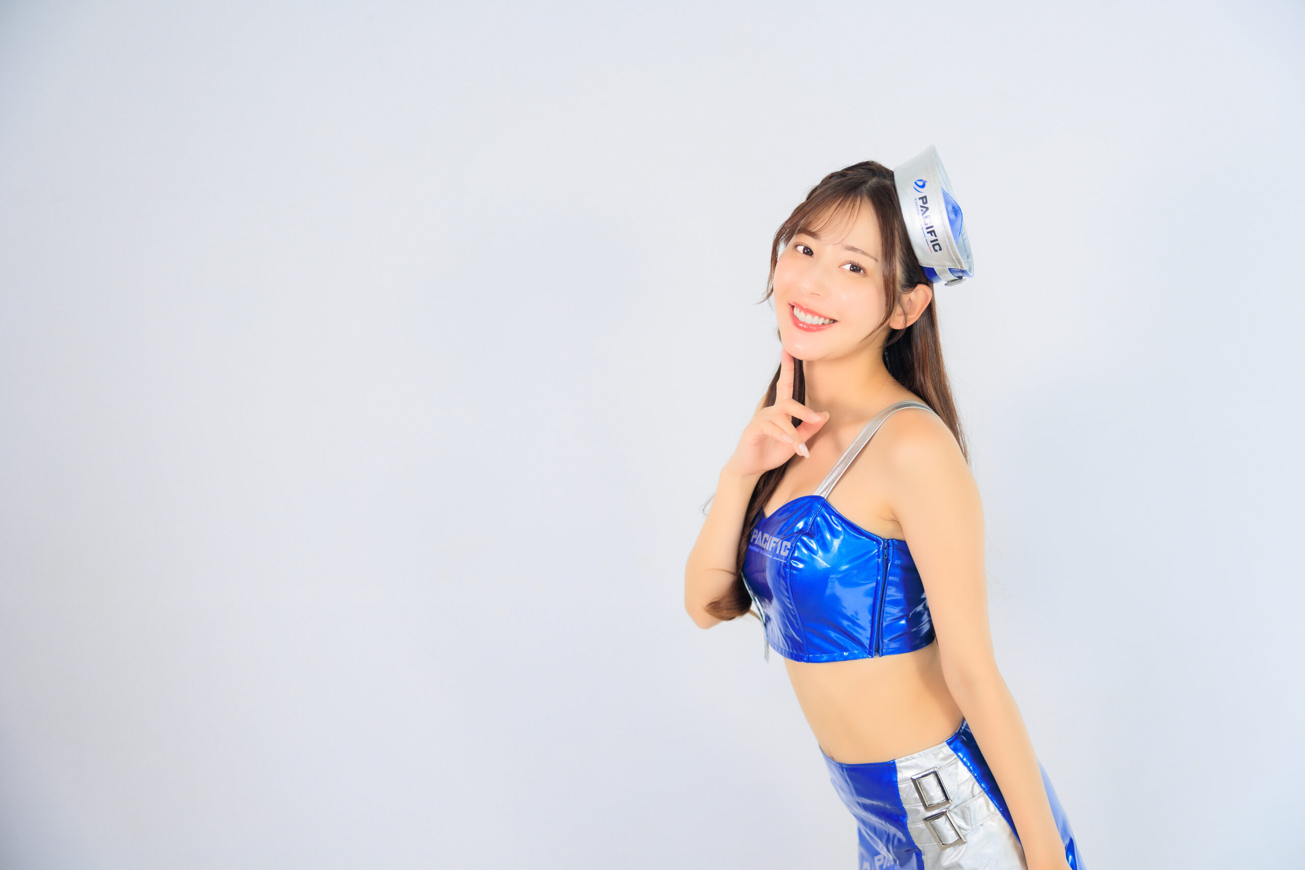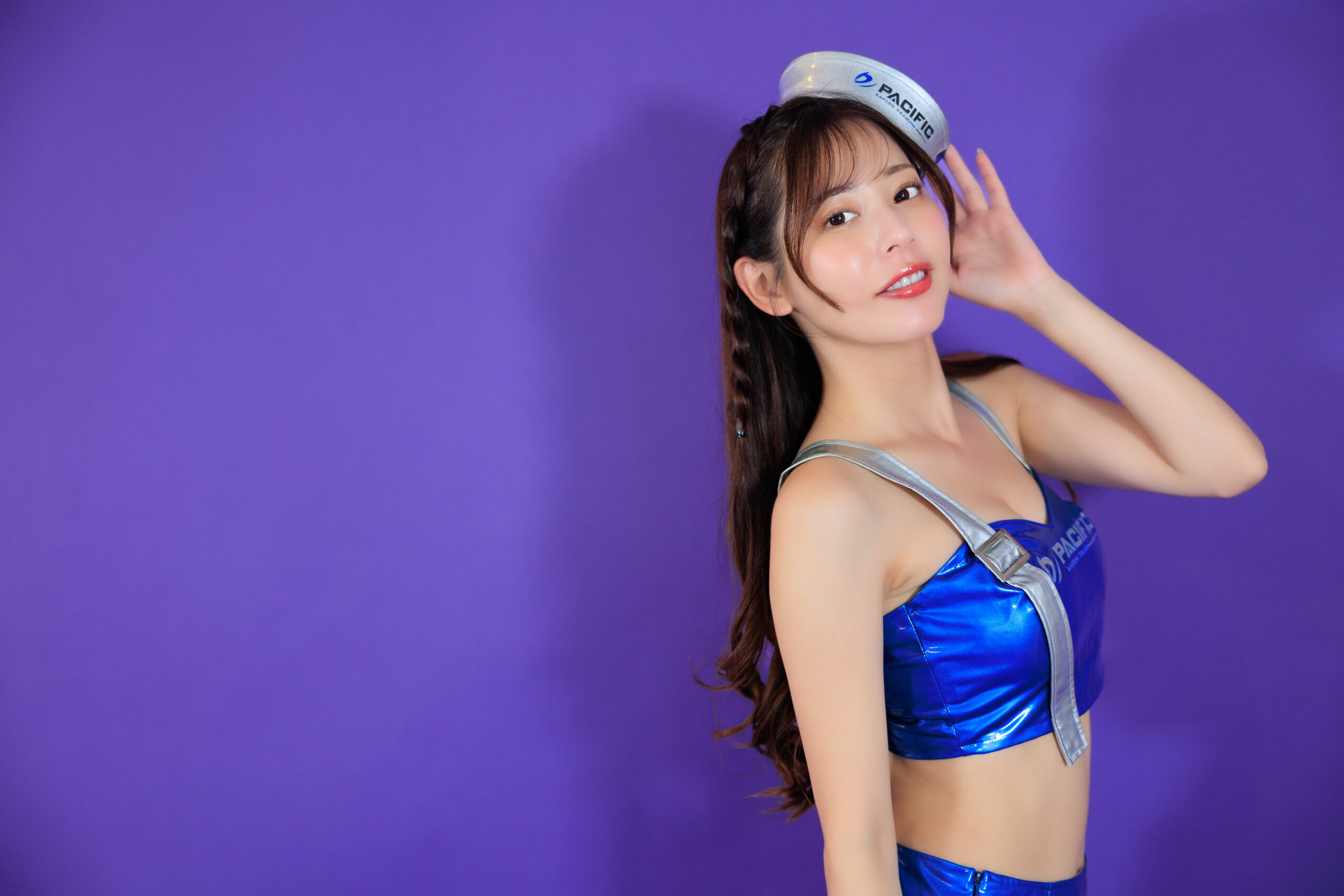 視線は真っ直ぐこちらを捉えつつも、力みすぎない自然さがあって、ももちゃんの“芯の強さ”と“柔らかさ”が同時に伝わってくる瞬間。ブルーのコスチュームが放つシャープな印象に、落ち着いた表情が重なり、Pacific Fairiesとしての完成度の高さを感じさせます。