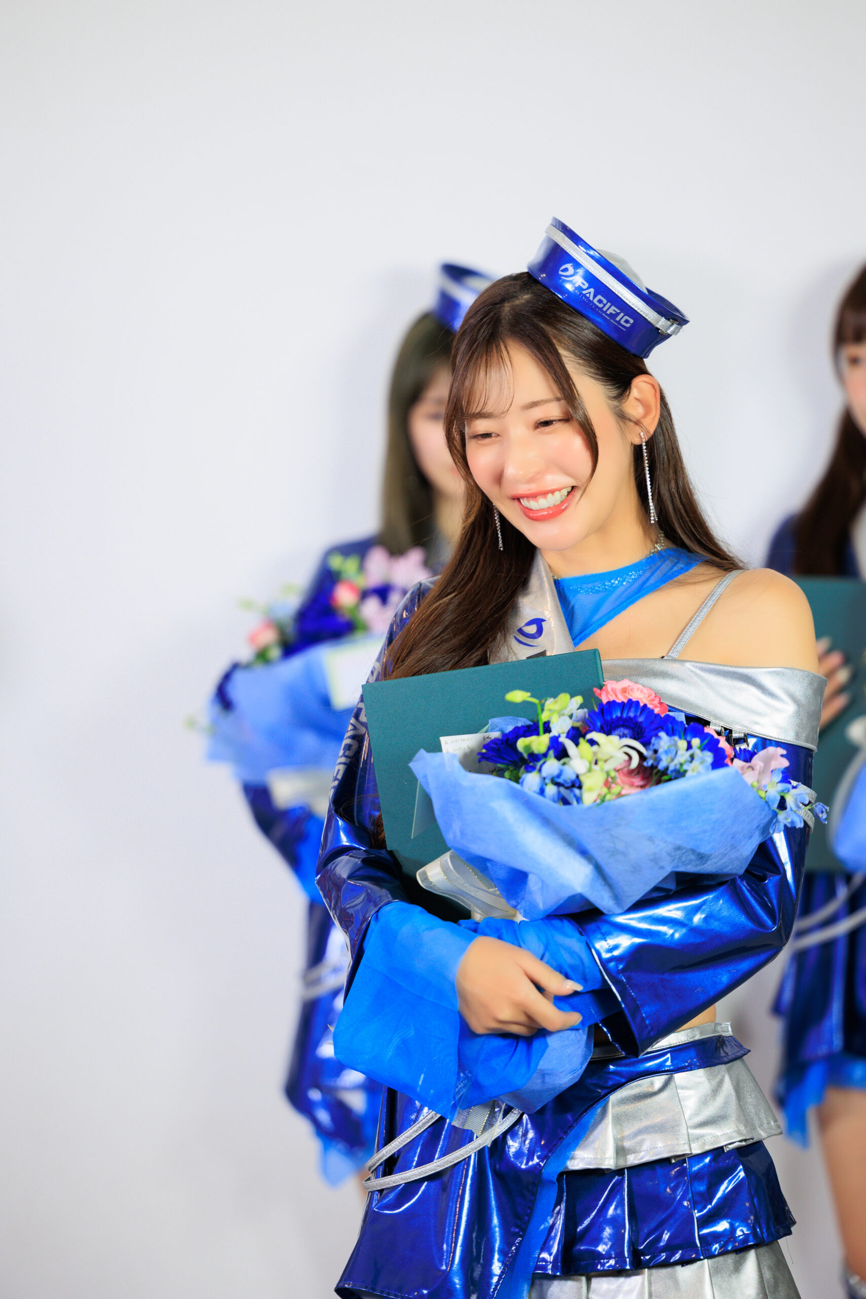 Pacific Fairies としての一年間、いつも明るく、真摯に、そして全力で向き合ってきたからこそ、この花束の重みがある。その努力や想いが、この1枚の中に静かに、でも確かに写り込んでいるように感じました。