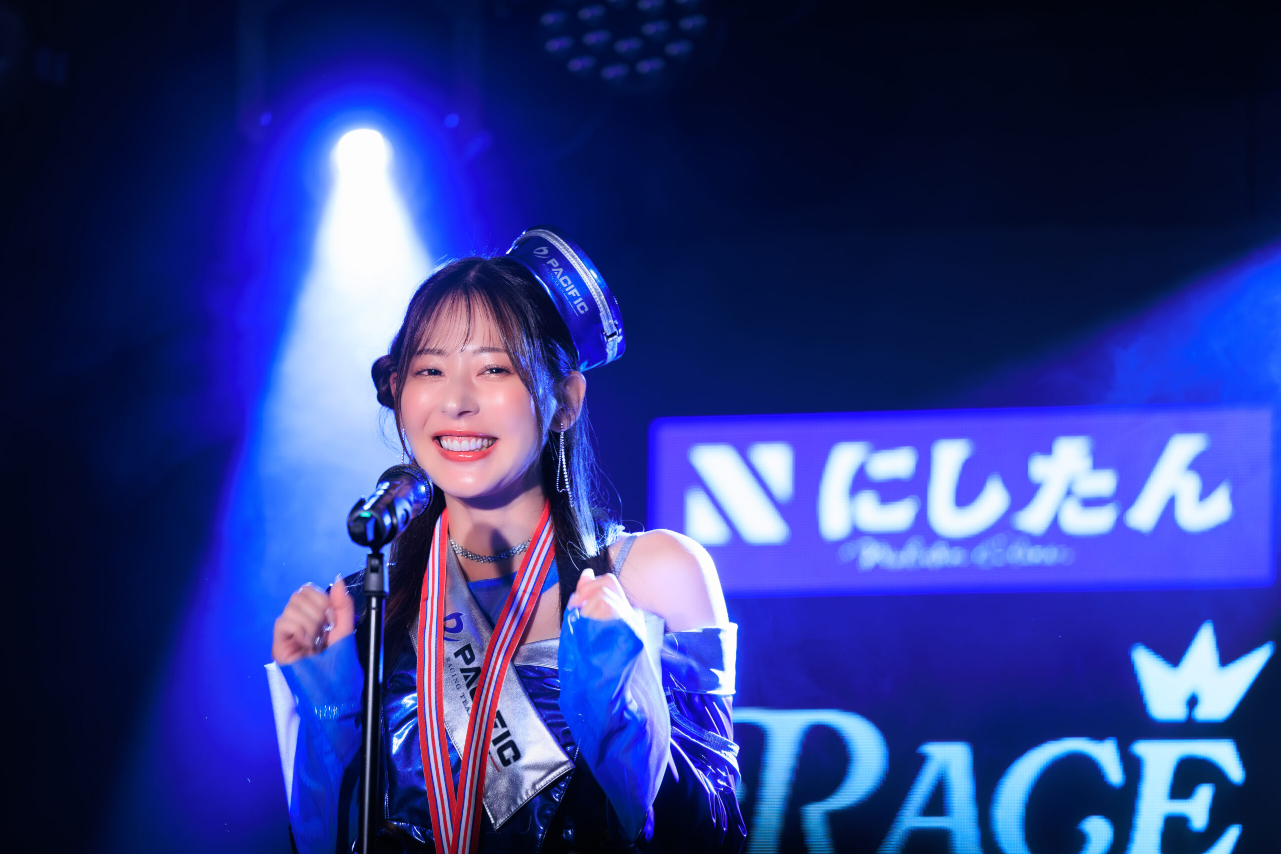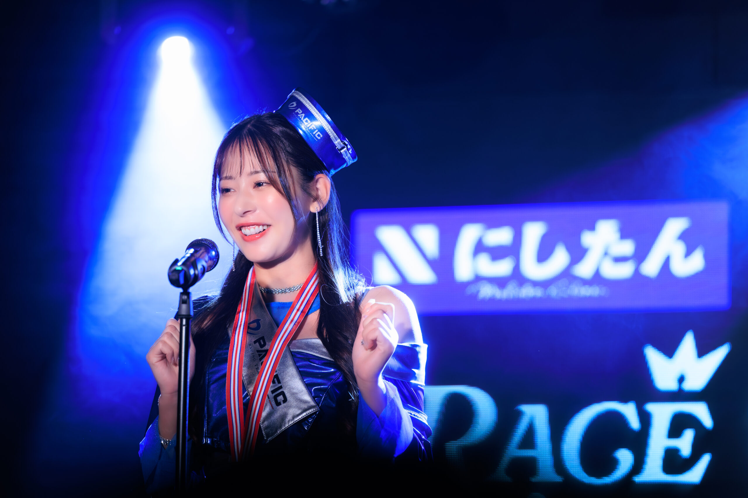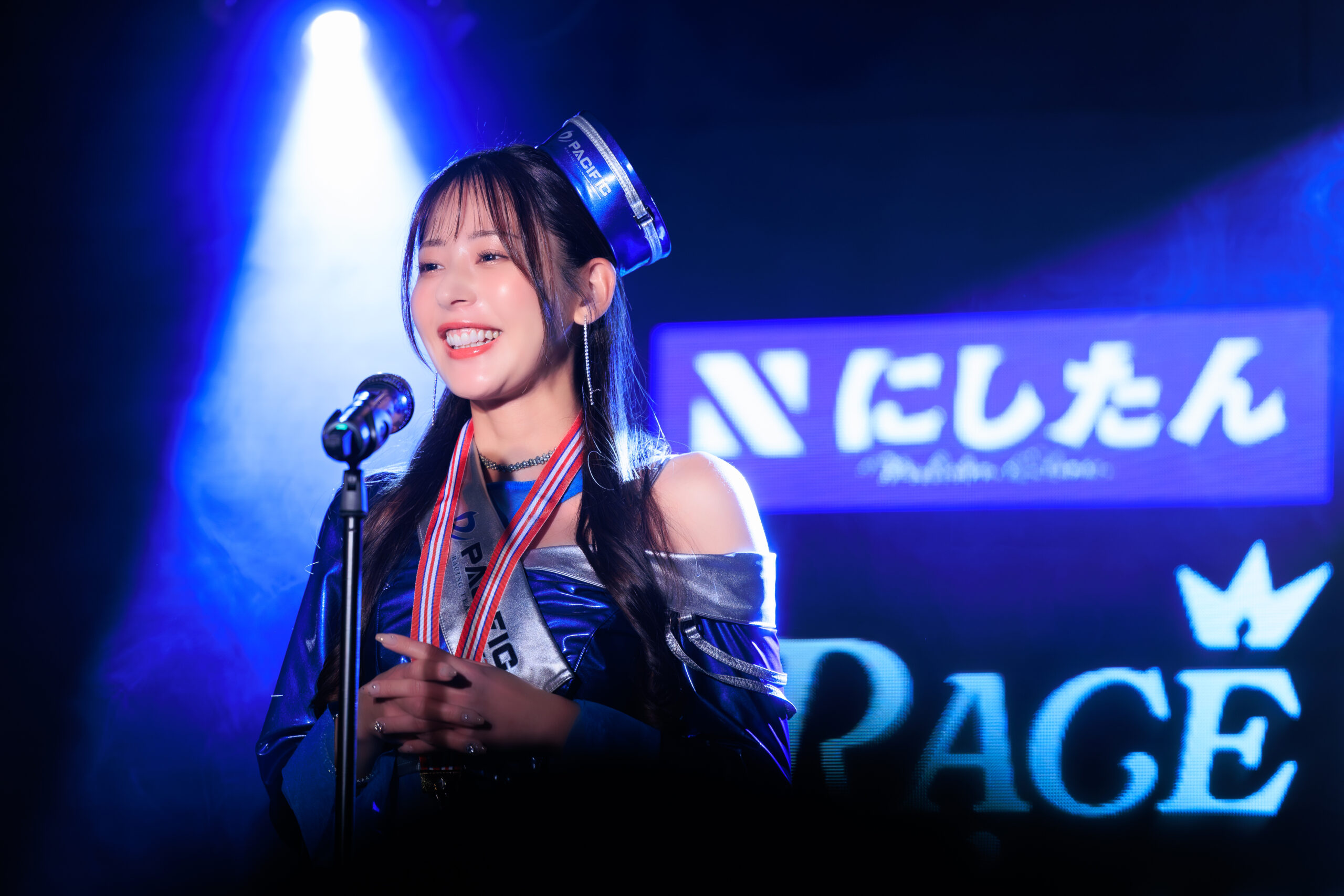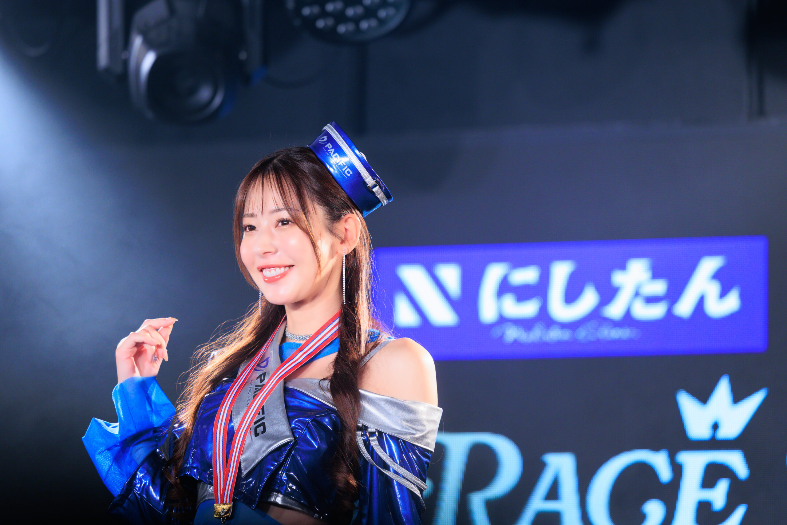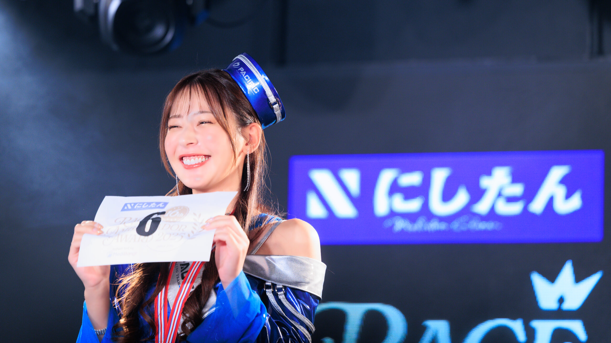 パシフィックブルーのコスチュームに身を包み、ステージライトを受けながら番号を掲げる姿は、まさにファイナリストそのもの。でも決して気負いすぎず、手を振る仕草や優しい笑顔からは、ファンを大切にするももちゃんの人柄がにじみ出ています。