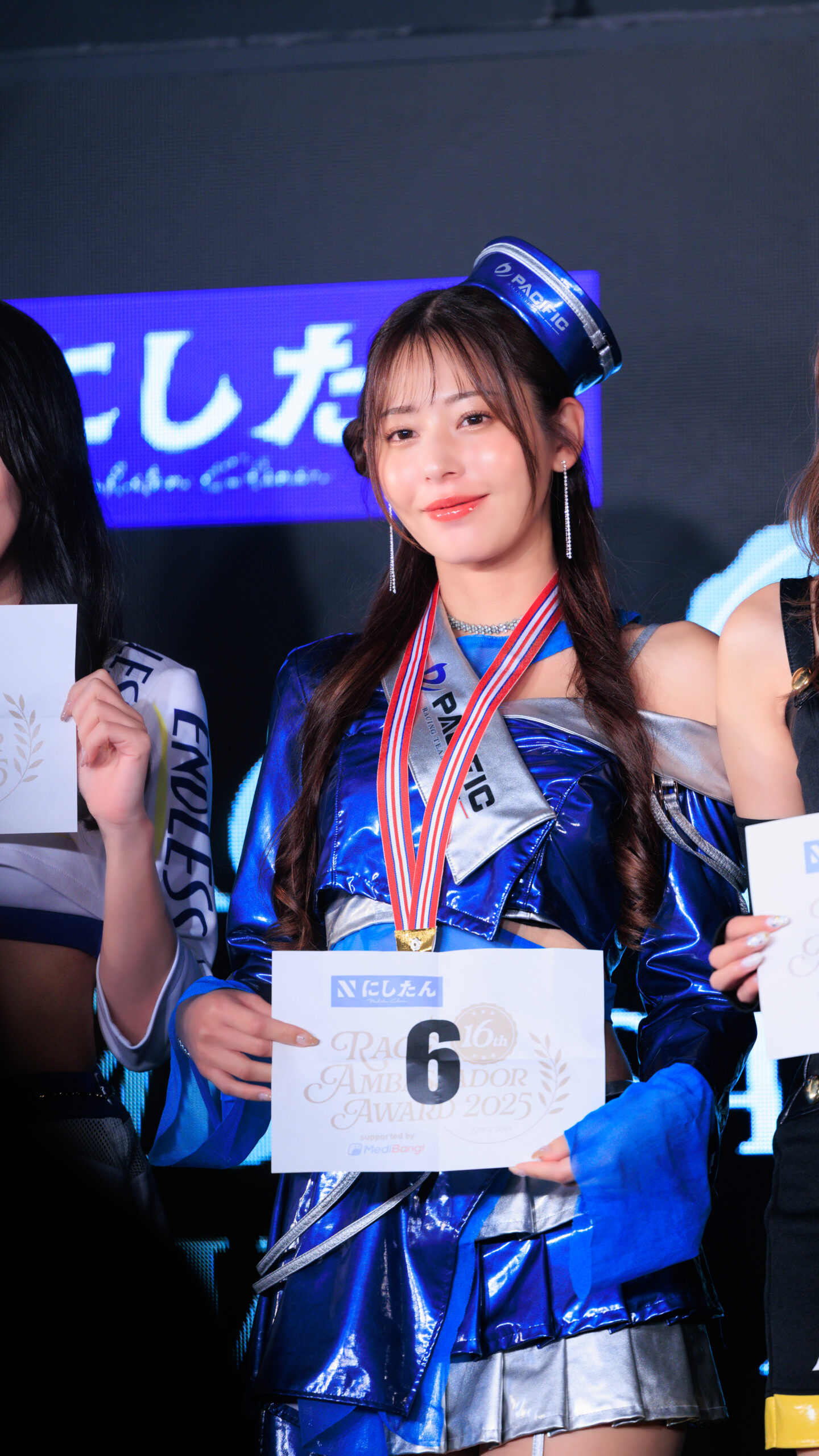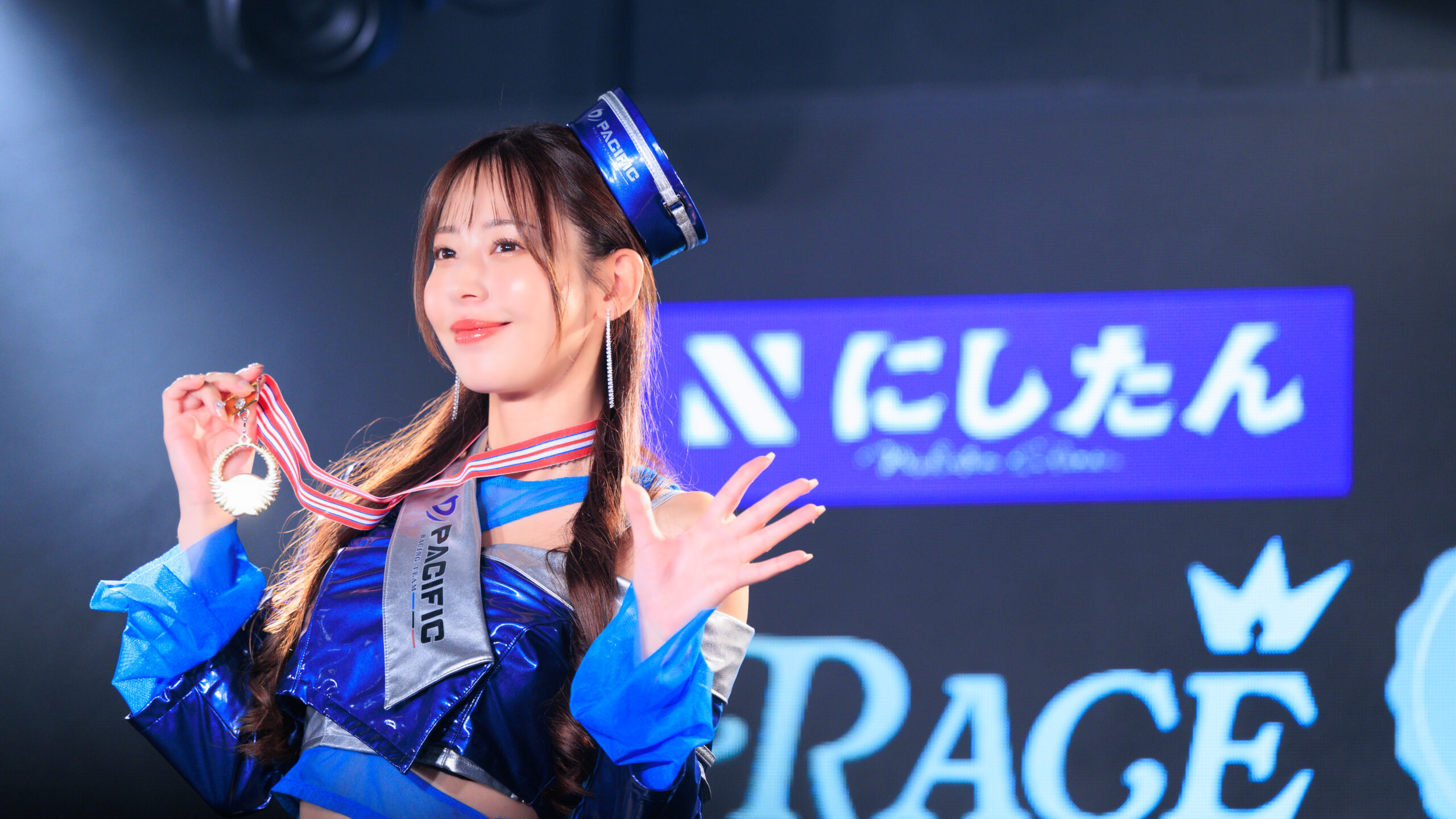 パシフィックブルーの衣装に身を包み、ファイナリストとして堂々とPRを終えた後でも、決して驕ることなく、きちんと気持ちを込めて頭を下げる姿。その姿に、ステージ上の「レースアンバサダー」としての顔と、素の「渡川もも」という人の温かさが重なって見えました。