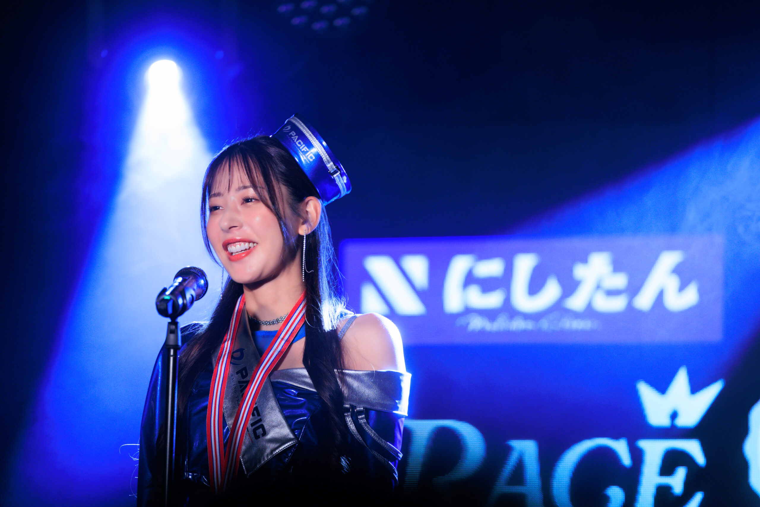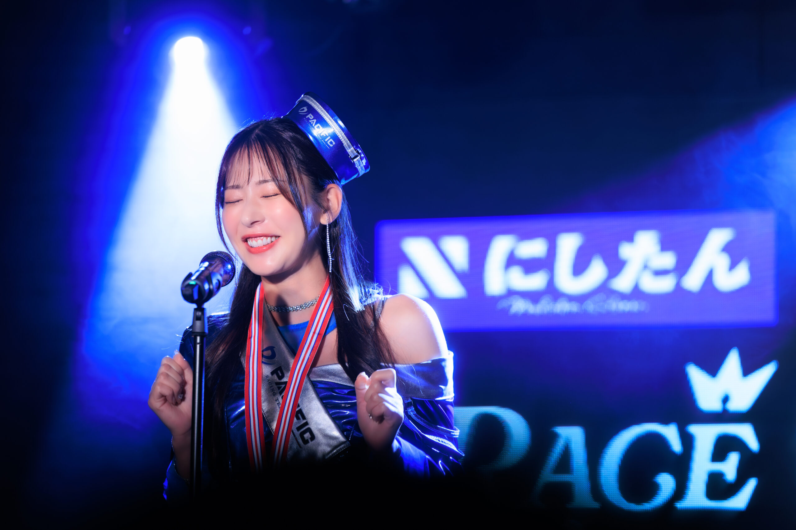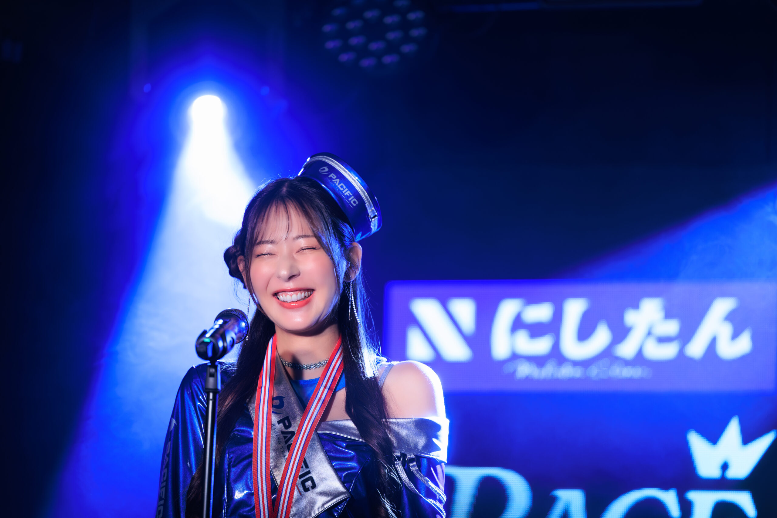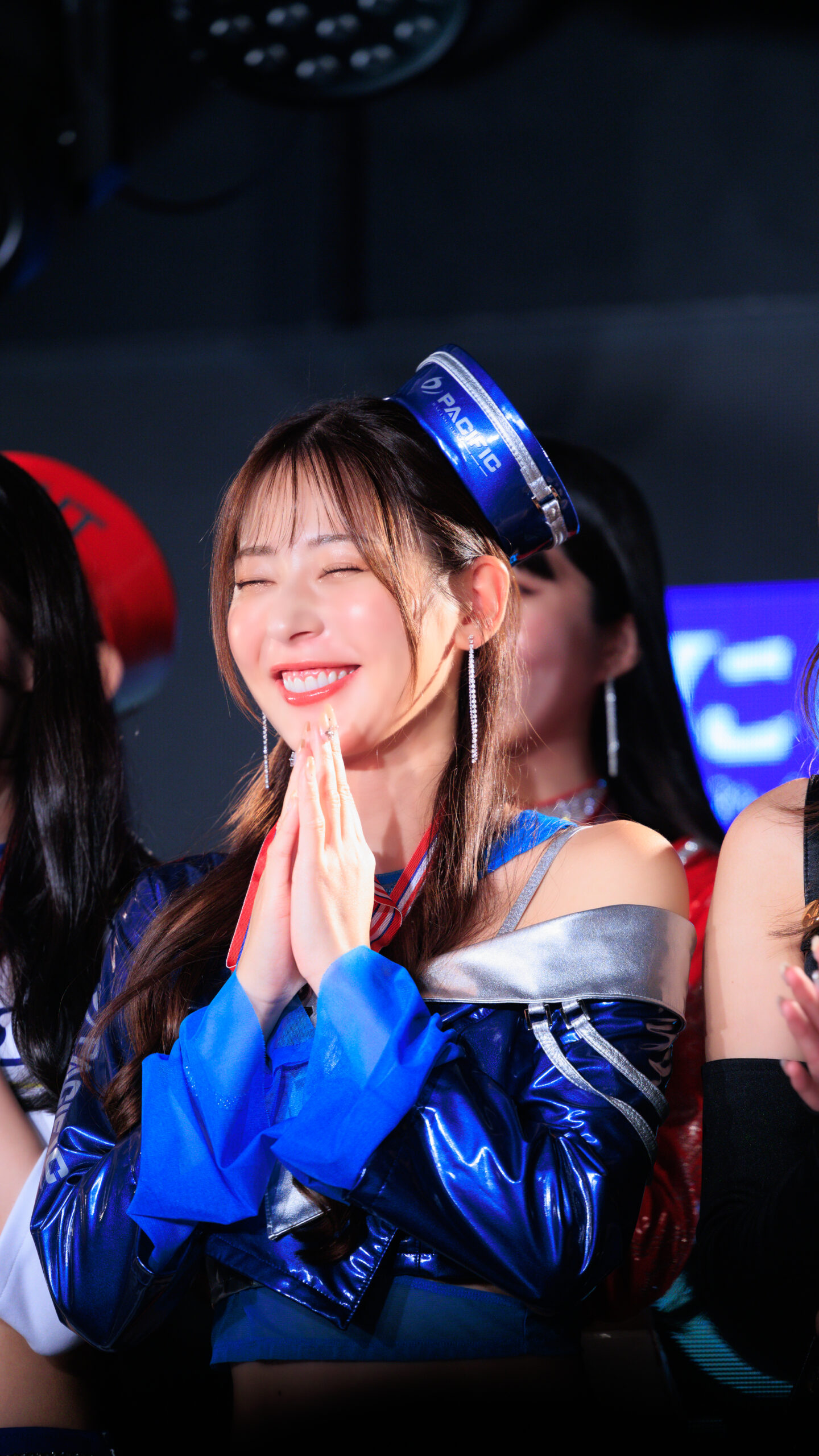 華やかなパシフィックブルーの衣装に身を包みながらも、表情はどこまでも柔らかくて優しい。ステージの主役として輝く一方で、こうした瞬間に見える控えめで素直な感情こそが、渡川ももさんの最大の魅力だと改めて感じさせられました。
